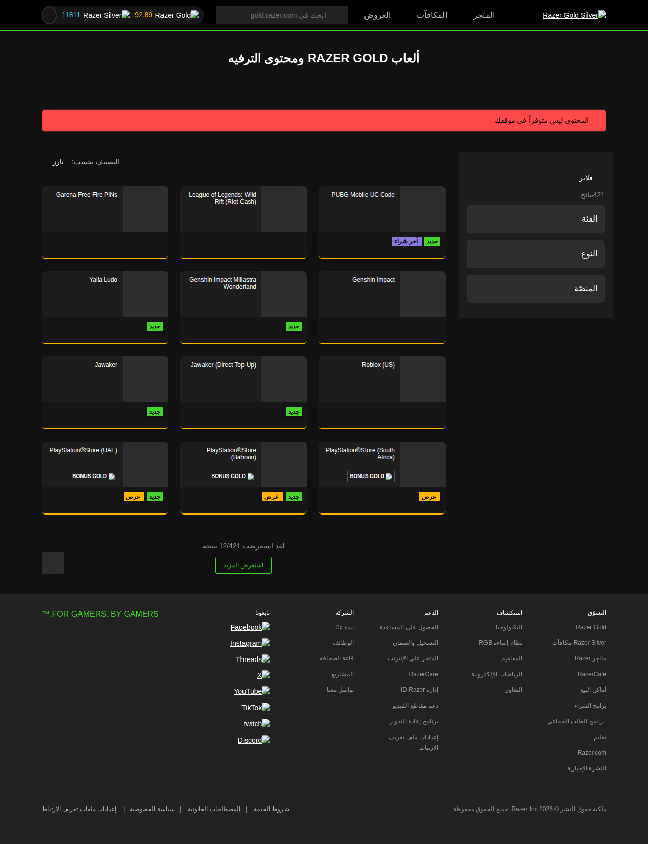 Direct top-up page loaded in 0.8s: https://gold.razer.com/global/ar/gold/catalog/freefire-direct-top-up