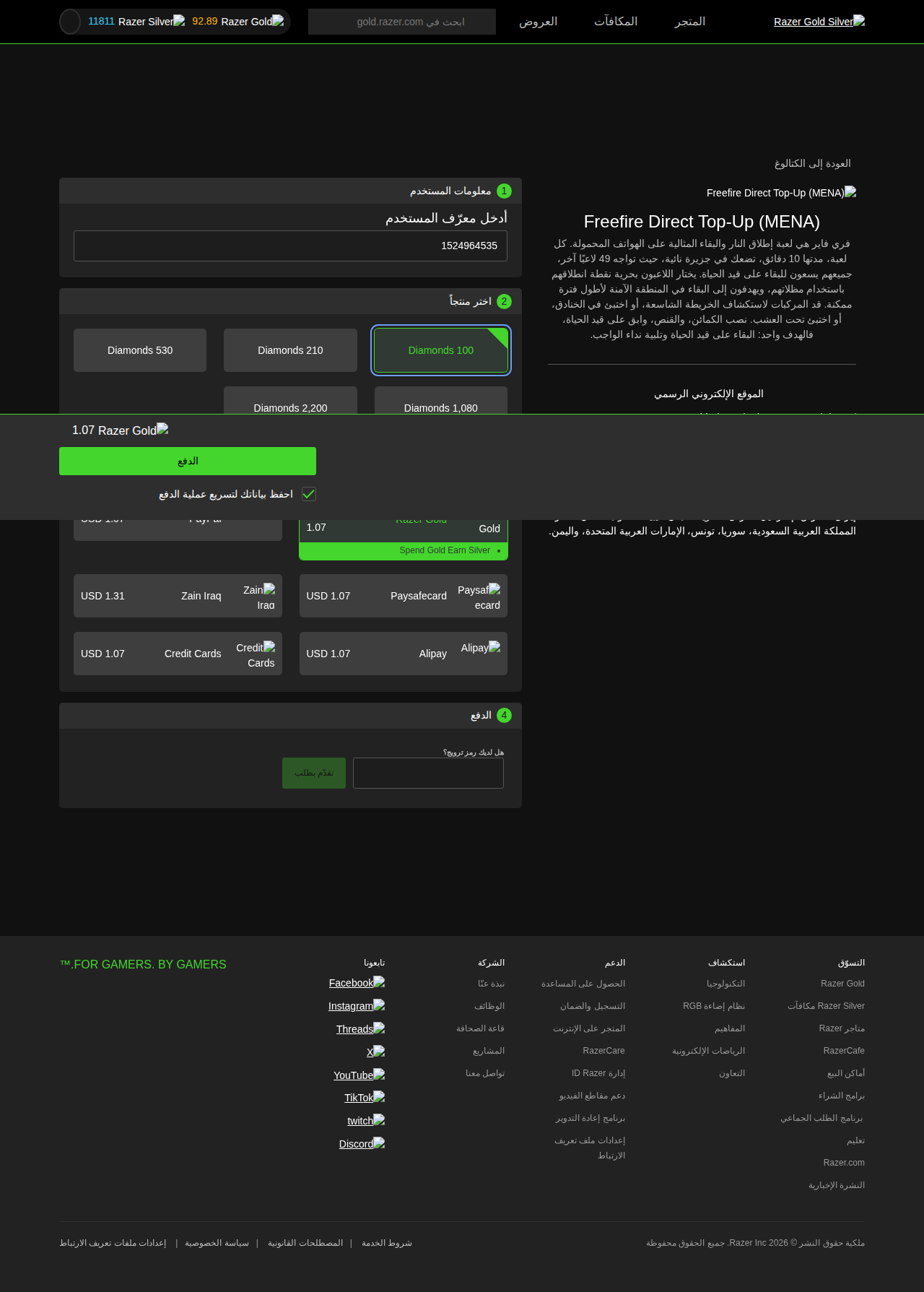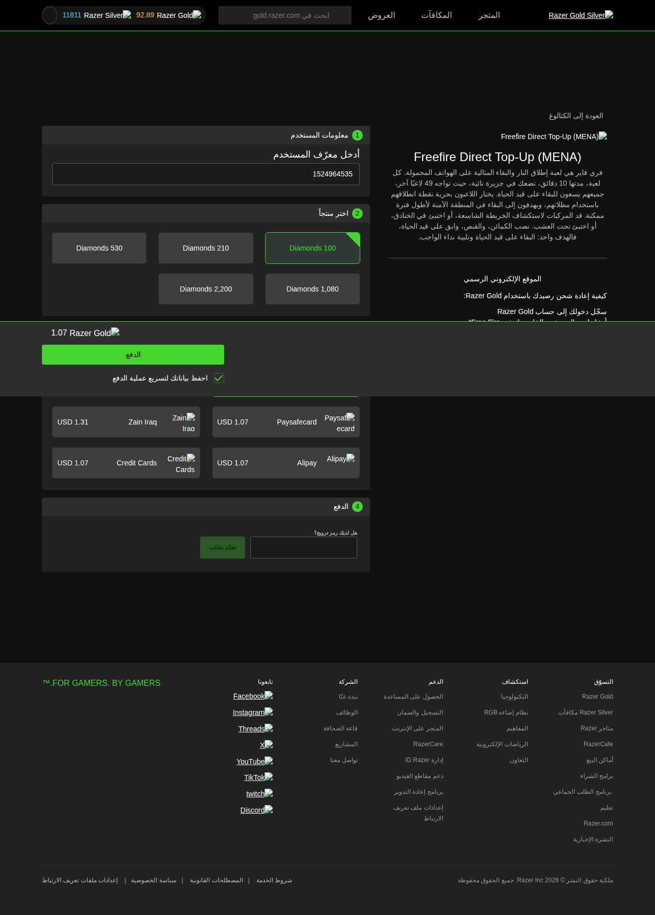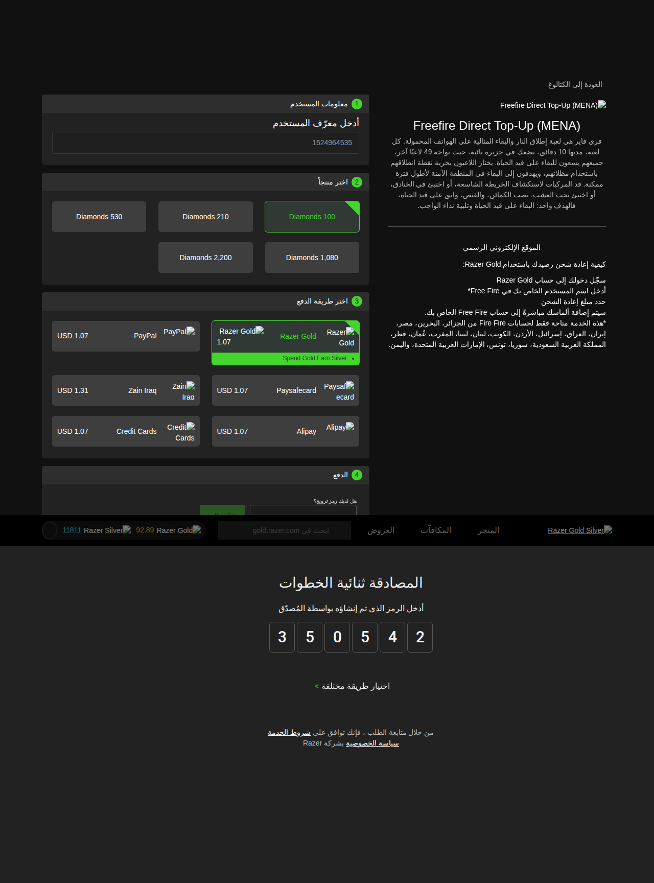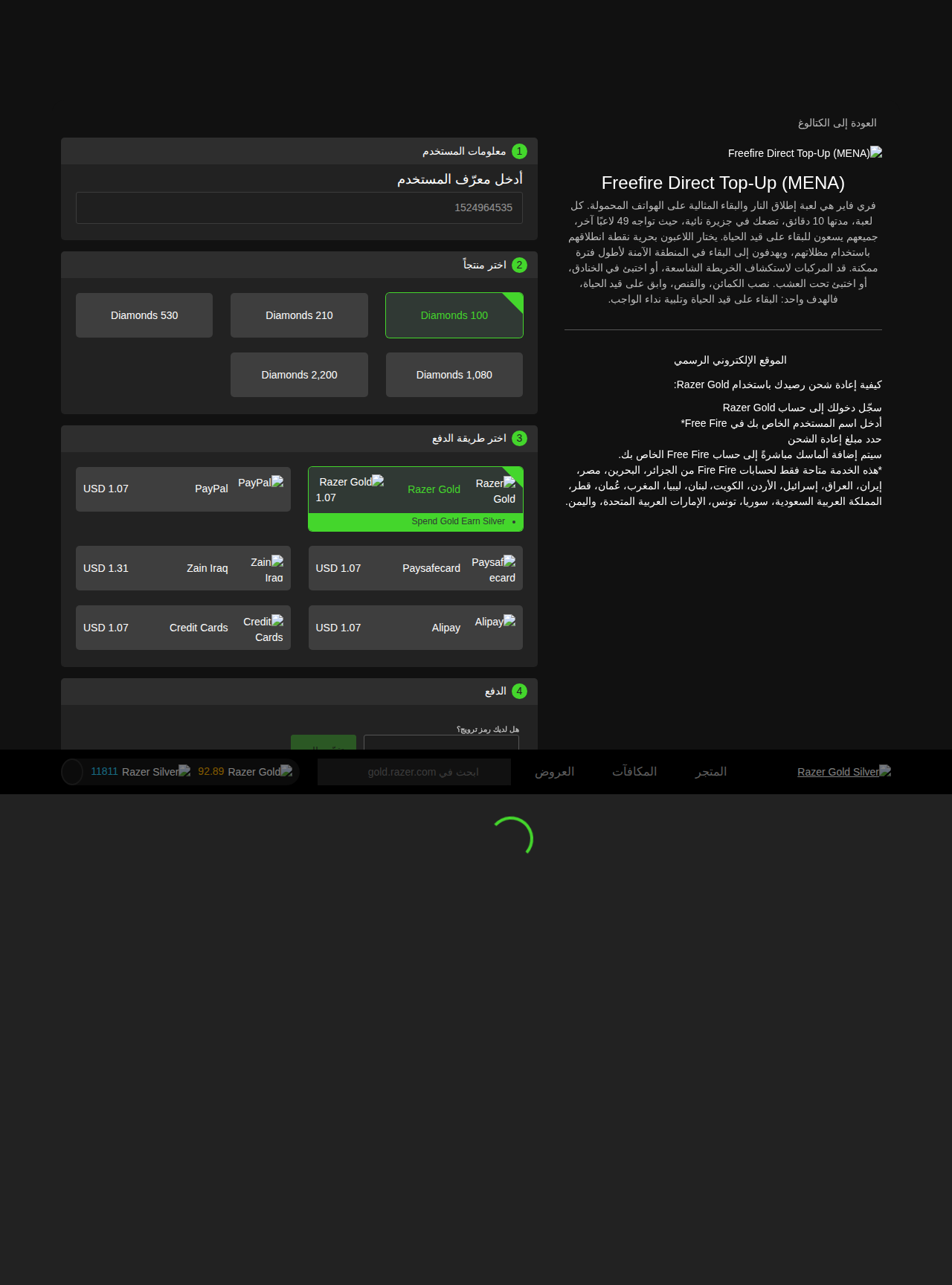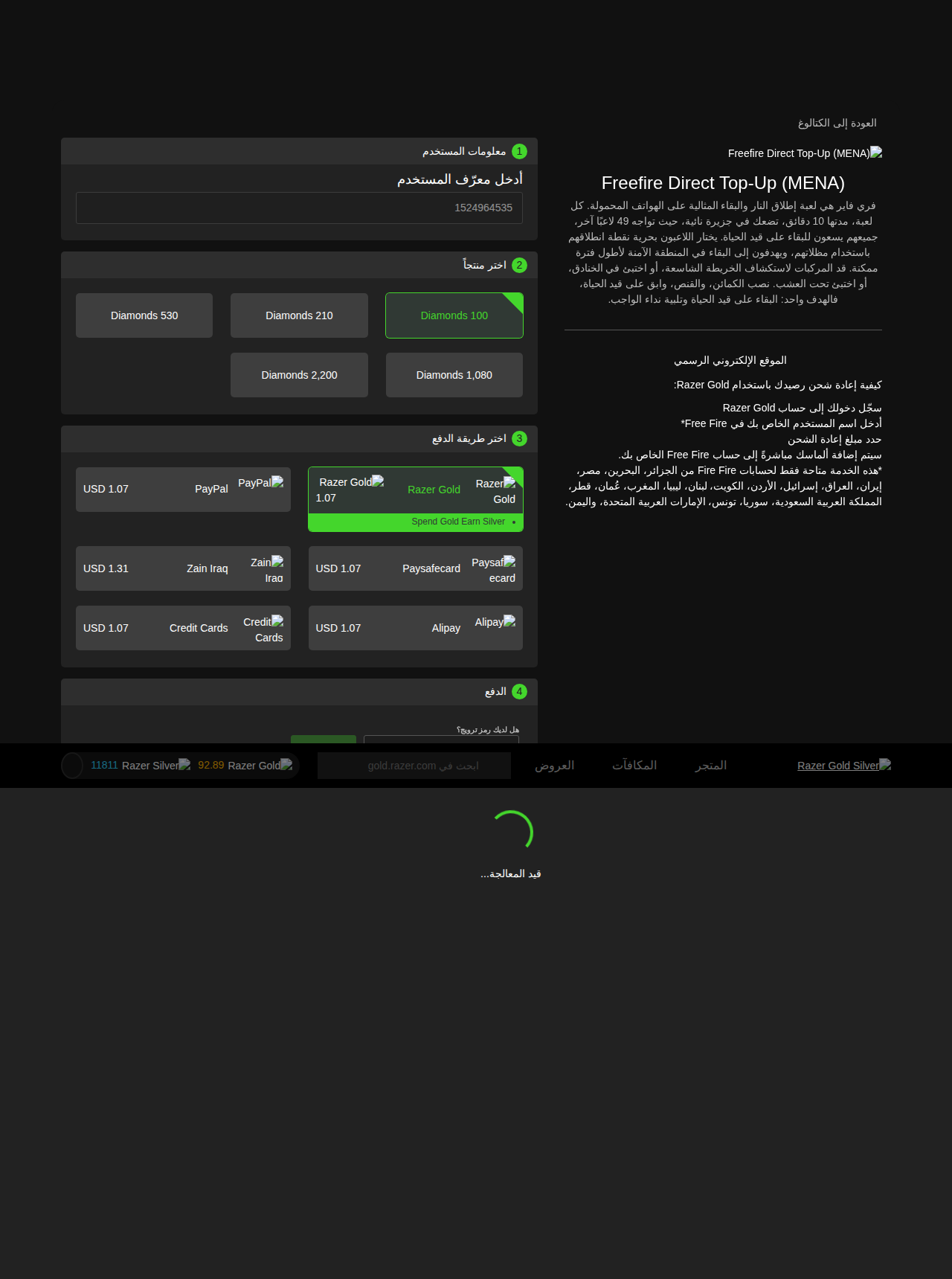 Direct top-up page loaded in 1.2s: https://gold.razer.com/global/ar/gold/catalog/freefire-direct-top-up